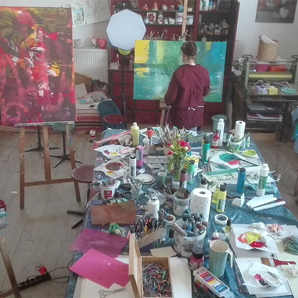 Schicht auf Schicht für Erwachsene Sina 23. November 2025 / weitere Termine auf Anfrage jeweils 10:00 – 17:00 Uhr 70,– € / je Termin / einzeln buchbar Großformatiges Malen auf Leinwand für Anfänger und Fortgeschrittene Wir stellen großformatige, expressiv farbige, abstrakte Gemälde her, die aus mehreren Farbaufträgen bestehen und insbesondere durch die Arbeit mit großen Rakeln, Abkratzungen und Übermalungen dem Zufall als Gestaltungsfaktor Raum geben. Das intuitive Spiel mit Farbe und Form steht im Vordergrund. Eigenes Material bitte mitbringen, ist aber auch vorhanden und wird nach Verbrauch abgerechnet.